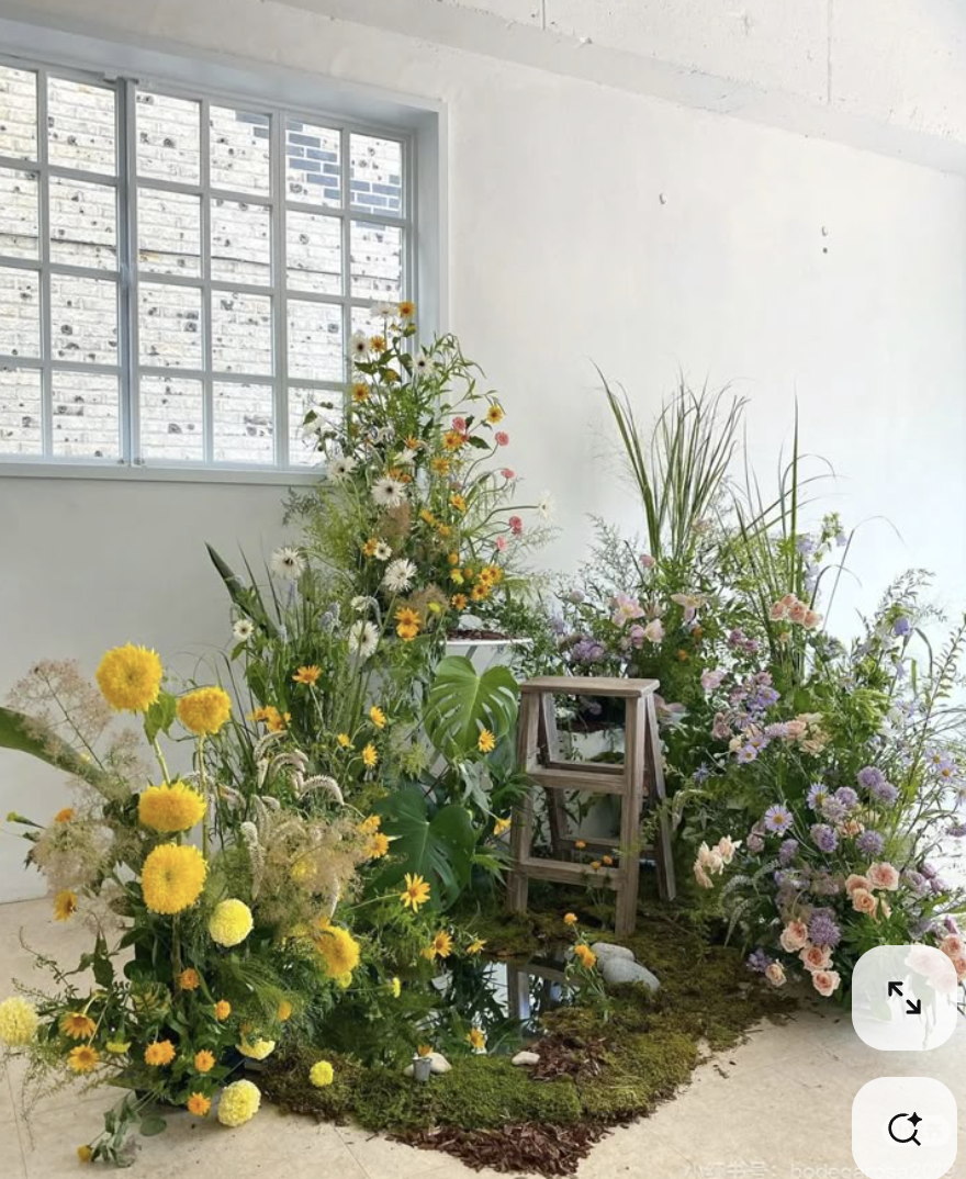 Please excuse my ugly drawing…. kk but something like this. tall tree + water + flower filed ^^