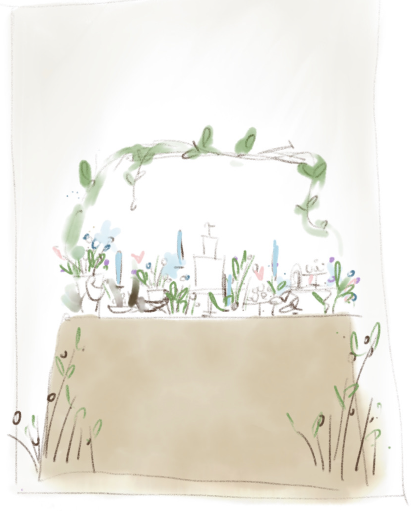 그림이 ㅋㅋ 엉망이라 죄송해요. 하지만 요런 느낌으로 린넨 베이지 테이블보 + 연한 그레이 wall + 심플한 그린 행잉 + 전통 소품 + 떡 + 예쁜 화분 / 가든 느낌들의 꽃들 사이로 고래와 친구들이 숨어 있는 느낌으로 만들면 어떨까 해요. 전체적으로 밝고 + 사랑스럼 + 네츄럴 + 봄느낌 아가 한복과 너무 잘 어울릴꺼 같아요.