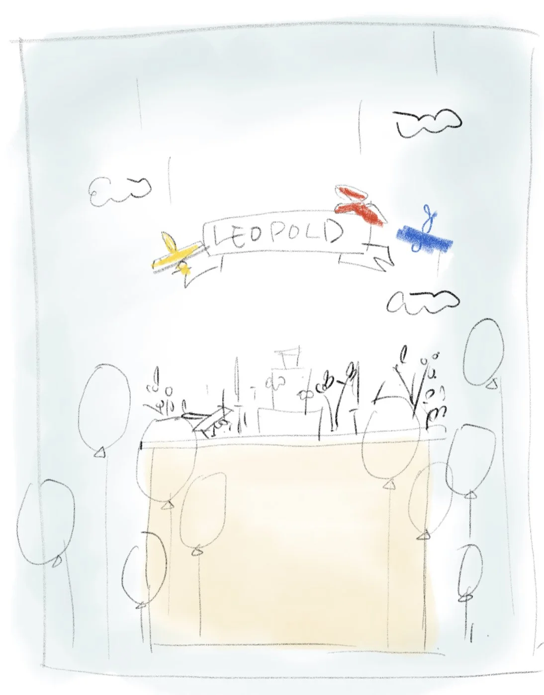 Backdrop: 하늘색 배경에 구름 + 비행기 + 그리고 약간의 풍선을 사용하면 예쁠꺼 같아요. 원래는 배경에 들어가는 엑스트라 비행기나 구름등은 추가 $ 인데 제가 디자인 컨펌을 너무 늦게 드리는 관계로… 추가 금액 없이 해드릴꼐용. ^^ 기달려 주셔서 감사해요. 배경에 달 아가 이름은 $100 추가 괘찮으시지용? ^^