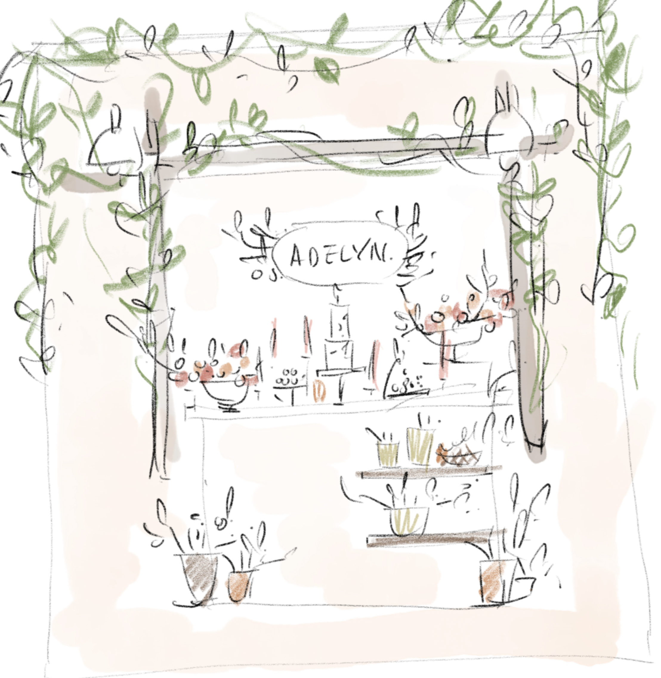 Sorry for ugly drawing. haha theme you gave me sounds lovely. Peach/pink + romantic + spring floral garden.