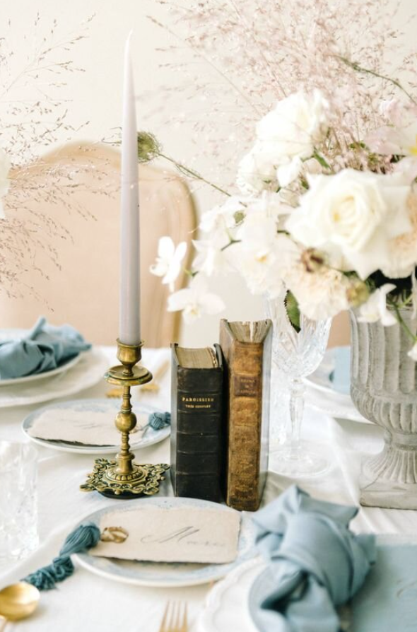 also will use vintage props + taper candles to match your table.